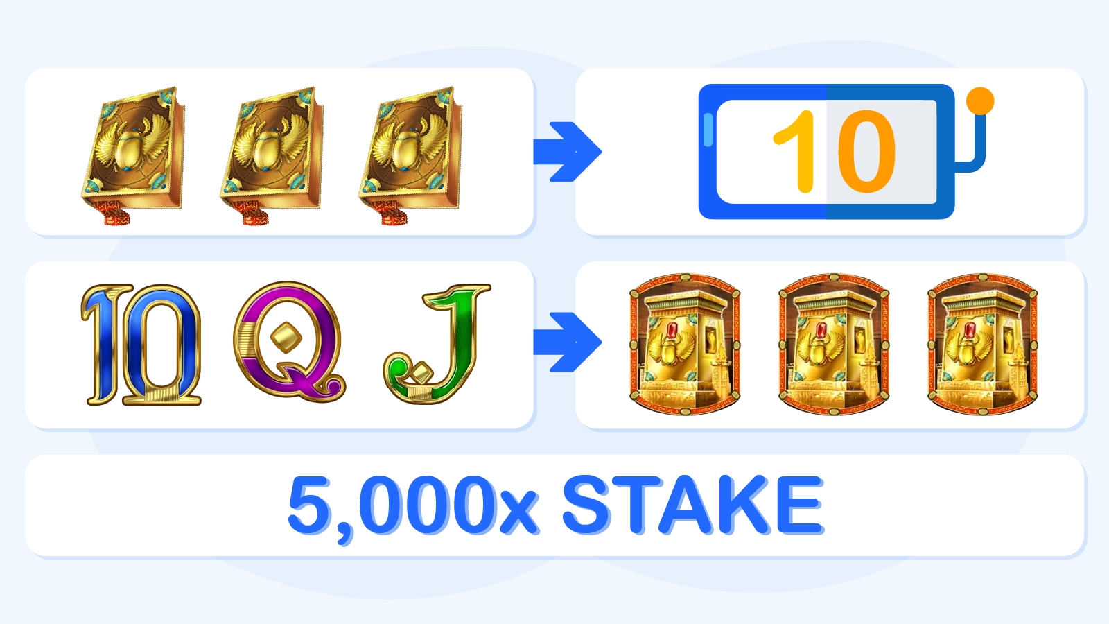 Before your 10 free games begin, the Book opens and its pages flick through the game’s symbol hierarchy. It randomly selects one symbol to become your special “expanding symbol” for the entire bonus round. This can be any symbol from the low-paying card symbols (10, J, Q, K, A) to the high-paying picture symbols (scarab, pharaoh statue, Rich Wilde himself).